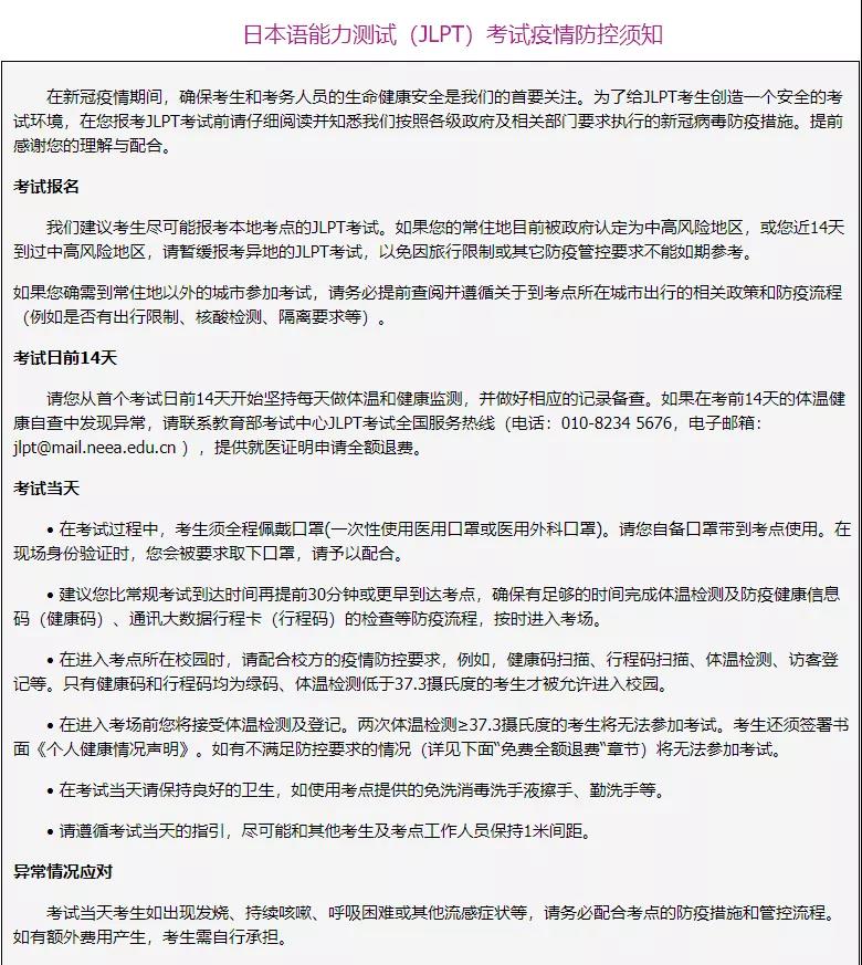 特殊時(shí)期請務(wù)必詳細(xì)看一下日本語能力測試(JLPT)考試疫情防控須知: