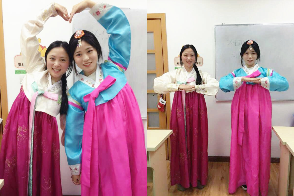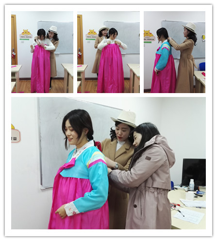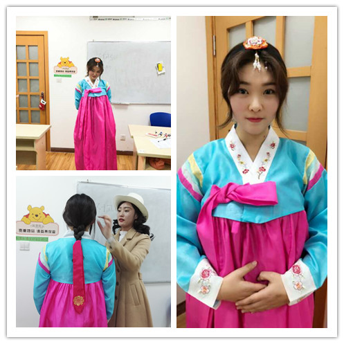 這次展示課,周敏老師還邀請了韓語外教老師,在外教老師的幫助下,同學們更加身臨其境了。一起感受了不一樣的韓服和韓國禮儀。